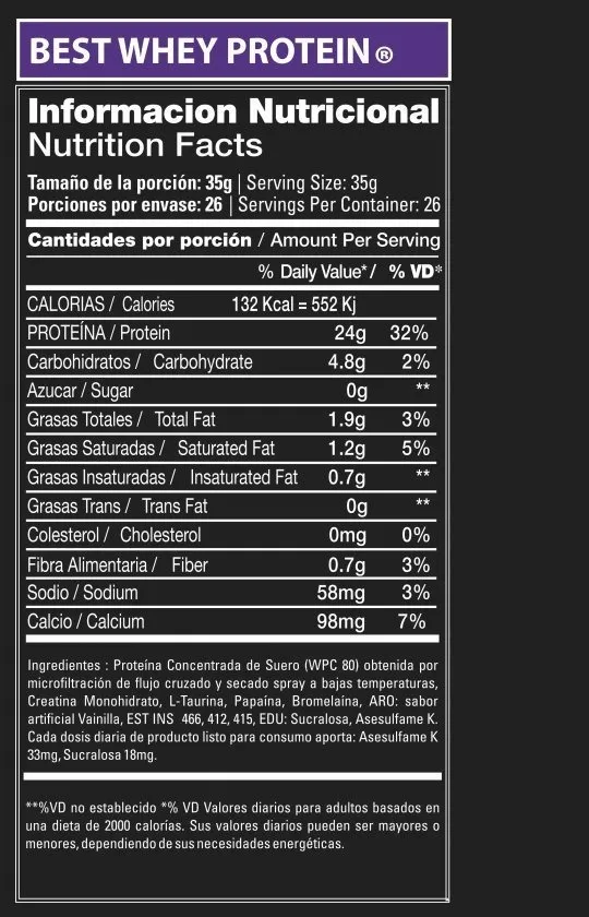 BEST WHEY® es una proteína avanzada desarrollada para quienes buscan un rendimiento superior. Elaborada con WPC80 de alta calidad y potenciada con creatina, taurina y enzimas digestivas, ofrece una combinación única para mejorar fuerza, recuperación y digestión sin molestias. Es uno de los productos más completos del mercado nacional y una opción ideal para quienes entrenan fuerte y quieren resultados visibles.