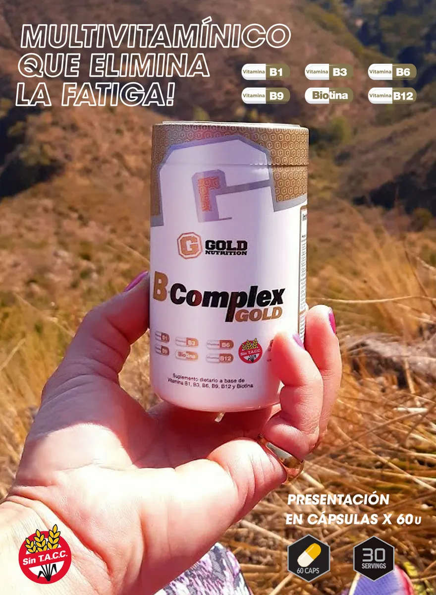 Complex B Gold Nutrition es una fórmula premium compuesta por 6 vitaminas del grupo B en dosis elevadas, equilibradas y altamente biodisponibles. Diseñado para combatir la fatiga, optimizar el metabolismo energético y fortalecer el sistema nervioso, es el suplemento ideal para personas activas, deportistas y quienes necesitan rendir al máximo cada día.